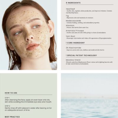 Eau, Glycérine, Méthylpropanédiol, Bétaïne, 1,2-Hexanediol, Niacinamide, Diglycérine, Extrait de Centella Asiatica, Extrait de Fruit de Ficus Carica (Figuier), Extrait de Laminaria Japonica, Extrait de Feuille d’Eclipta Prostrata, Extrait de Feuille de Melia Azadirachta, Extrait de Fleur de Melia Azadirachta, Extrait de Graine de Theobroma Cacao (Cacao), Extrait d’Artemisia Princeps, Extrait de Racine de Dioscorea Japonica, Extrait de Fleur de Calendula Officinalis, Extrait de Portulaca Oleracea, Extrait de Houttuynia Cordata, Extrait de Spiraea Ulmaria, Lécithine Hydrogénée, Huile de Lavandula Angustifolia (Lavande), Huile de Zeste de Citrus Paradisi (Pamplemousse), Huile de Feuille de Rosmarinus Officinalis (Romarin), Huile de Graine de Helianthus Annuus (Tournesol), Huile de Fleur d’Anthemis Nobilis, Huile de Bois d’Aniba Rosodora (Bois de Rose), Laurate de Polyglyceryl-10, Trométhamine, Carbomère, Panthénol, Poudre de Houttuynia Cordata, Polyméthacrylate de Glycéryl, Allantoïne, Polyacrylate de Glycéryl, Disodium EDTA, Fructooligosaccharides, Dextrine, Bêta-Glucane, Céramide NP, Acide Hyaluronique Hydrolysé, Madécassoside, Propanédiol, Butylène Glycol, Ethylhexylglycérine.