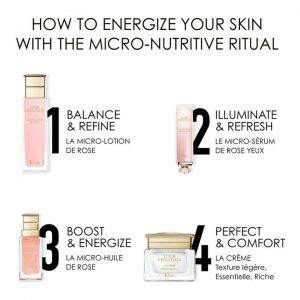 2. Énergisez votre peau avec le rituel Micro-Nutrition. Illuminez votre regard avec Le Micro-Sérum de Rose Yeux. Équilibrez votre peau avec La Micro-Lotion de Rose et redonnez-lui un coup d’éclat avec La Micro-Huile de Rose.