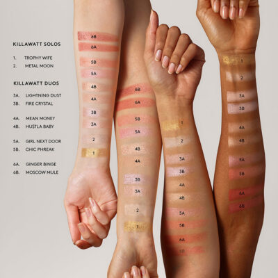 Girl Next Door – Rose Tendre Chic Phreak – Rose Pêche Suralimenté Illuminez où vous voulez quand vous voulez. Killawatt Freestyle Highlighter est né pour refléter chacune de vos humeurs avec sa gamme de solos et duos lumineux. Avec une dose de couleur glorifiant la peau, Killawatt va de l’éclat du jour subtil à des nuances incroyablement suralimentées conçues pour toutes les carnations. Contrairement à votre surligneur quotidien, Killawatt garde la peau éclairée au-delà du coucher du soleil grâce à sa formule légère longue tenue – un hybride crème-poudre qui fond instantanément dans la peau et se mélange avec presque aucun effort. Une autre victoire, il est chargé de reflets ultrafins pour une texture crémeuse ultra douce. Pour un éclat tueur, Killawatt est votre choix pour mettre en valeur votre visage, vos yeux, vos lèvres, votre clavicule… littéralement partout où vous avez envie d’une touche de lumière. « Vous pouvez l’utiliser sur n’importe quelle partie de votre visage ; vos yeux vos joues votre nez pontez votre clavicule. J’aime aussi l’utiliser sur mon corps car il est très brillant. Vous le regardez et vous pensez : « Est-ce que ça va être efficace ? Est-ce que ça va être efficace ?’ Alors – BAM ! – ça tient ses promesses ! » Fenty Beauty est 100 % sans cruauté envers les animaux.