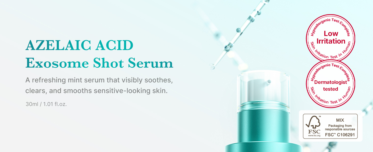 Le sérum Azelaic Acid Exosome Shot 2000 de medicube contient un trio d’ingrédients clés : 99 % d’acide azélaïque, 5 % de niacinamide et des exosomes. Ces trois actifs anti-acné agissent en synergie pour une peau nette, apaisée et résistante. Sa formule rafraîchissante favorise un teint lisse et éclatant, et une seule pression suffit pour diffuser des millions d’exosomes et soigner efficacement les imperfections. Conseil : si vous souhaitez intégrer les exosomes à votre routine beauté, commencez par le sérum Azelaic Acid Exosome Shot 2000 de medicube.