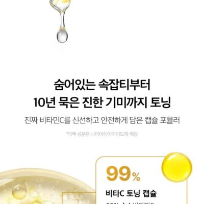 Soin ciblé des imperfections — Vitamine C pure : Contient 99 % de vitamine C pure encapsulée pour préserver sa fraîcheur et son efficacité, offrant un soin ciblé des imperfections et un teint irrégulier.